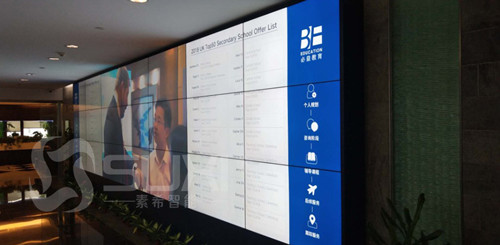 該液晶大屏幕主要位于電梯出口處,主要是用來做培訓中心宣傳使用,素希根據(jù)客戶要求定制了一組3×7拼接液晶屏,顯示畫面清晰細膩,色彩真實一致,贏得了客戶滿意的評價。
