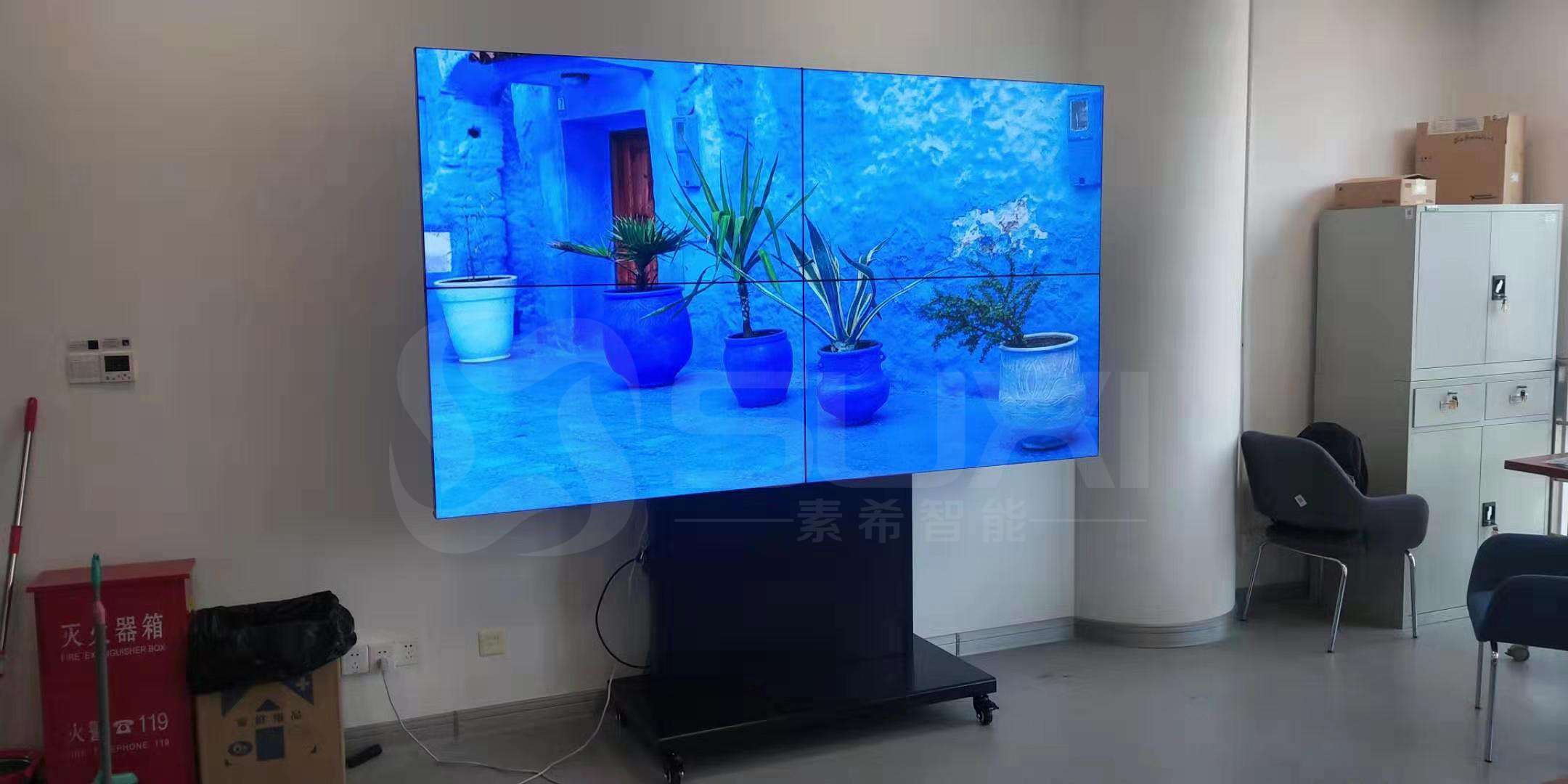 本次客戶采用的是三星55寸3.5mm液晶拼接單元,采用可移動支架底座帶4個滑動滾輪,分辨率為1920*1080亮度為700的高亮度,從客戶需求到看現場出方案以及安裝,客戶們都是比較滿意的。